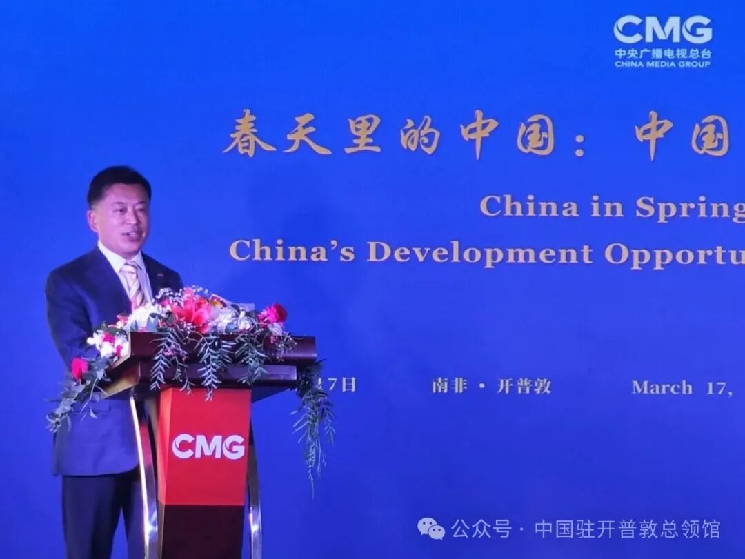 任总领事表示,今年的中国两会审议通过“十五五”规划纲要草案,擘画了未来五年中国式现代化的宏伟蓝图。中国的发展是世界的机遇,中国的开放是全球的福音。中国企业海信、龙源等在领区投资兴业,创造就业和税收。中方愿同包括南非在内的非洲各国携手,共享中国式现代化新机遇,共筑更加紧密的命运共同体,为促进全球共同发展、推动人类进步事业作出新的更大贡献!