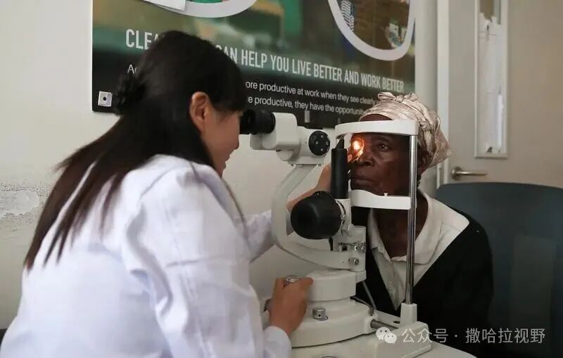 3月17日,在赞比亚首都卢萨卡,中方医生在利维·姆瓦纳瓦萨大学教学医院对患者进行眼科检查。